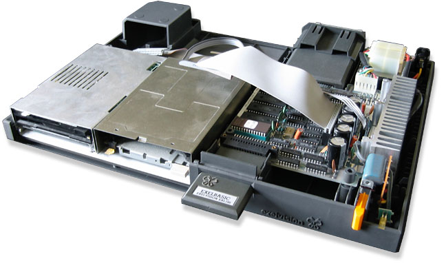 Voici l'un des périphériques les plus intéressants d'Exelvision, il offre une utilisation plus souple et plus professionnelle de l'ordinateur grâce à son lecteur de disquettes 3.5 embarqué et l'ajout de 40 Ko de RAM CPU. Chaque disquette permet de stocker jusqu'à 620 Ko de données.