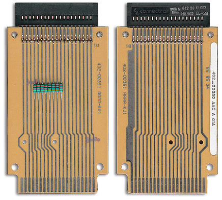 <-- Faces inférieure et supérieure du prolongateur (notez les huit résistances de 47 ohms sur A9-A16, les lignes de données).