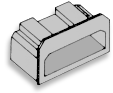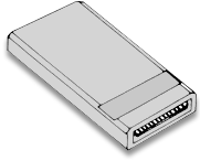L'adaptateur CRAM (dessin de droite) est une pièce en plastique qui se glisse à l'arrière du micro-ordinateur en lieu et place du cache plastique du même gabarit. Son rôle, guider le prolongateur CRAM vers le connecteur de la carte mère.